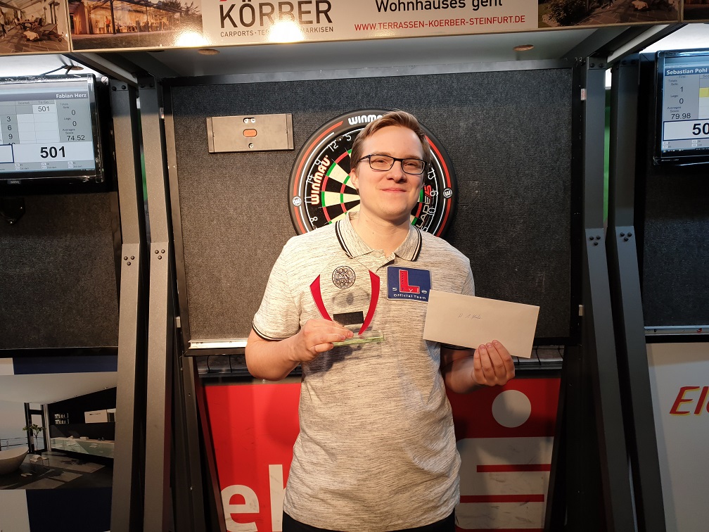 Bei den Herren feierte WM-Teilnehmer Sebastian Pohl (BDV) seinen Premierensieg bei einem DDV-Turnier. Pohl, in der Bundesliga für den Irish Folk Pub München aktiv, gewann im Finale am Sonntag gegen Fabian Herz mit 5:2. Am Samstag holte sich Luc Peters (NWDV) den Turniersieg im Finale gegen Niko Springer (RPDV).