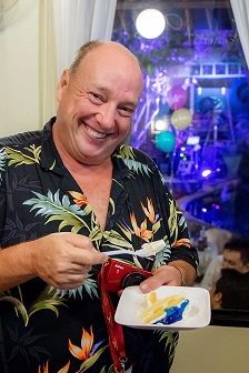 Vor ein paar Wochen habe ich Stefan eine E-Mail geschickt, um herauszufinden, ob sich in den letzten fünf Jahren etwas bei ihm verändert hat und er antwortete: "Es hat sich nichts verändert. Ich hacke mich immer noch über den Golf Platz und spiele immer noch aus dem gleichen Grund so einmal im Monat Dart!" Das Bild, dass Stefan an seinem 60. Geburtstag mit seiner langjährigen Freundin Geo zeigt ist ebenso mit seiner Genehmigung aus Stefans