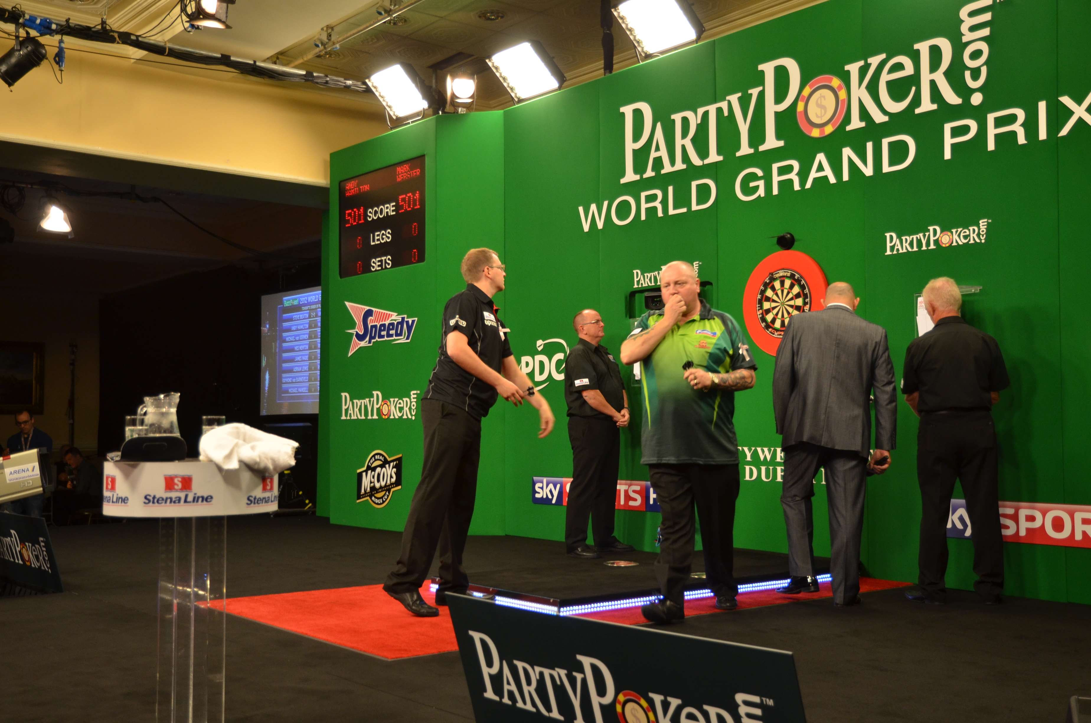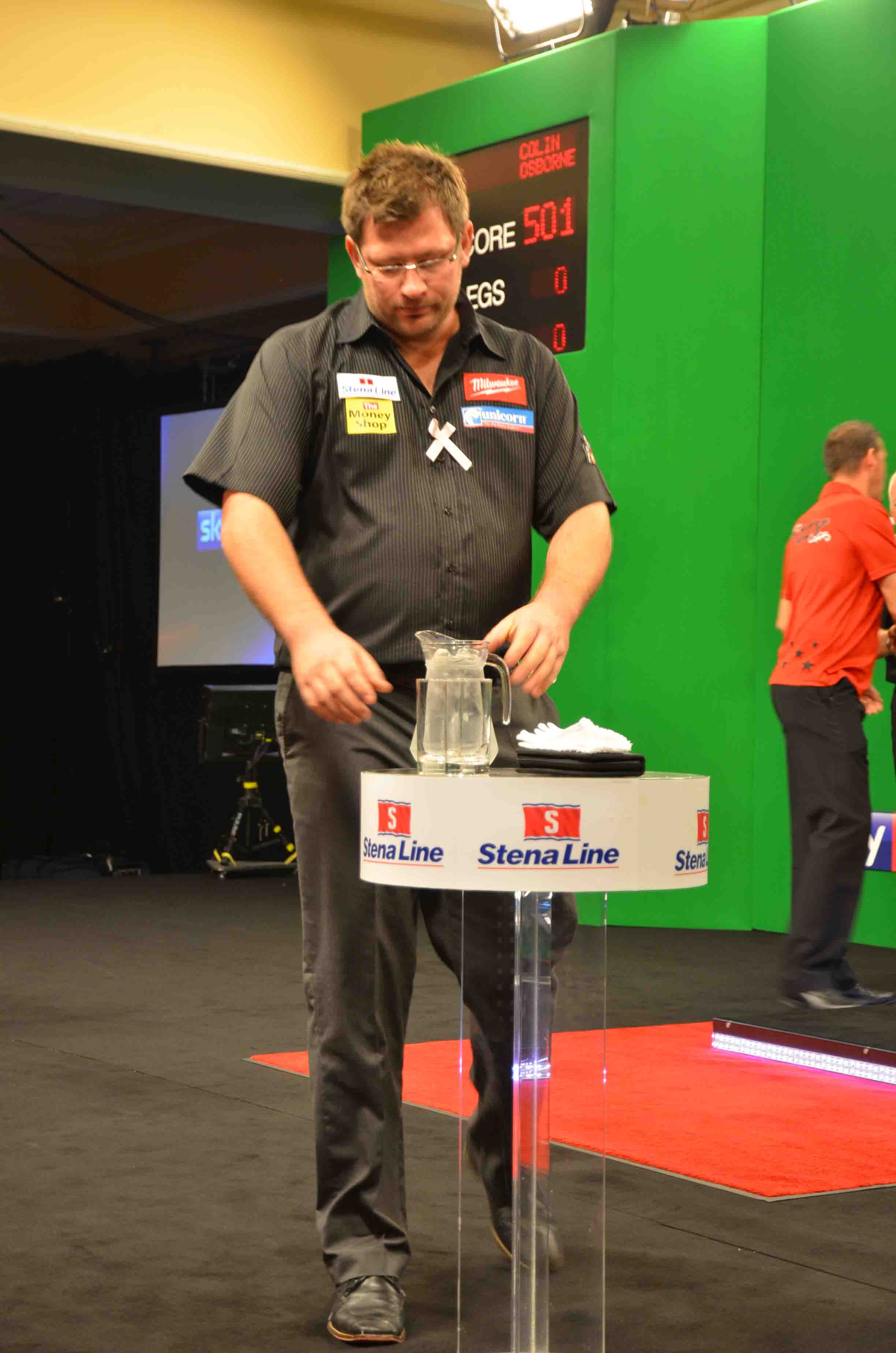 In den ersten drei Spielen beeindruckten Steve Beaton, Andy Hamilton und Michael van Gerwen durch starke Leistungen, auch Wes Newton überzeugte gegen Ronnie Baxter. Dann kam das merkwürdige Spiel von James Wade gegen Colin Osborne. Schon als James Wade auf die Bühne kam, war klar, dass irgendetwas nicht stimmte. Wade, der sonst immer die Offiziellen auf der Bühne besonders freundlich begrüßt, begrüßte sie dieses Mal fast gar nicht und wirkte so, als hätte er größte Mühe, sich zu beherrschen. Zuerst konnte er seine Haltung noch bewahren und einigermaßen gute Darts spielen, aber irgendwann gelang es ihm nicht mehr und er zerbrach förmlich. Was mit ihm los war, konnte ich nicht herausfinden, im Presseraum wurde kein Wort darüber verloren, es zeigte sich aber auch keiner sonderlich überrascht, was möglicher Weise aber auch an der eher zurückhaltenden Art der Engländer lag.