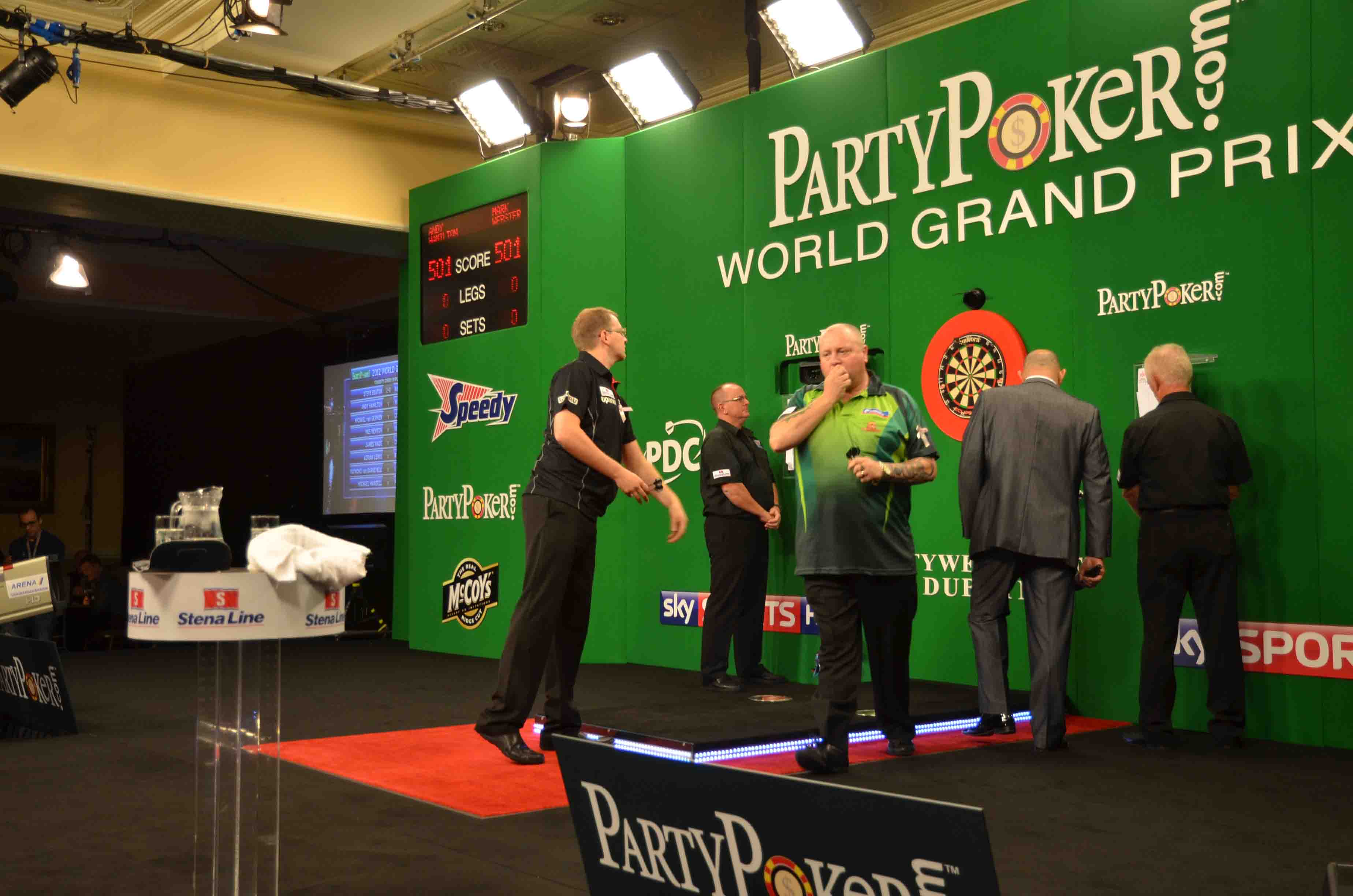 Raymond van Barneveld und seine Barney Army, die auch in Dublin dabei war, hatten anschließend keinen Grund zum Feiern. Der Niederländer schied mit einem 2:0 Sieg gegen Ian White gleich in der ersten Runde wieder aus. Im letzten Spiel des Abends konnte einem der Ire Michael Mansell gegen Paul Nicholson schon fast leid tun - er hatte auch nicht den Hauch einer Chance.