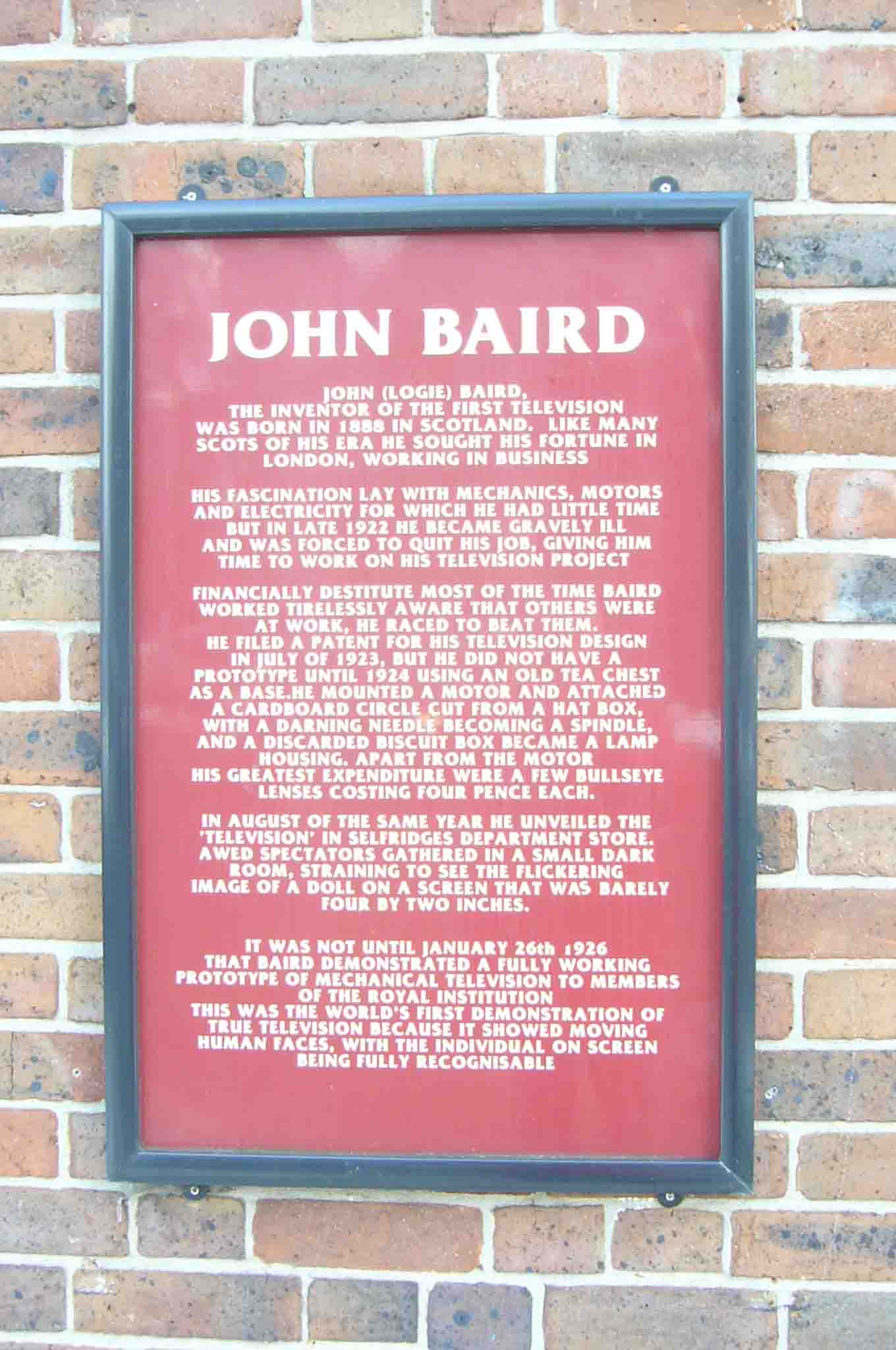 John Logie Baird ist der Erfinder des mechanischen Fernsehens. Geboren wurde er in Helensburgh in Schottland. Er wollte weder Pfarrer werden noch zur See gehen, was seine beruflichen Möglichkeiten in Schottland stark einschränkte, so dass er wie viele junge Schotten nach London zog.