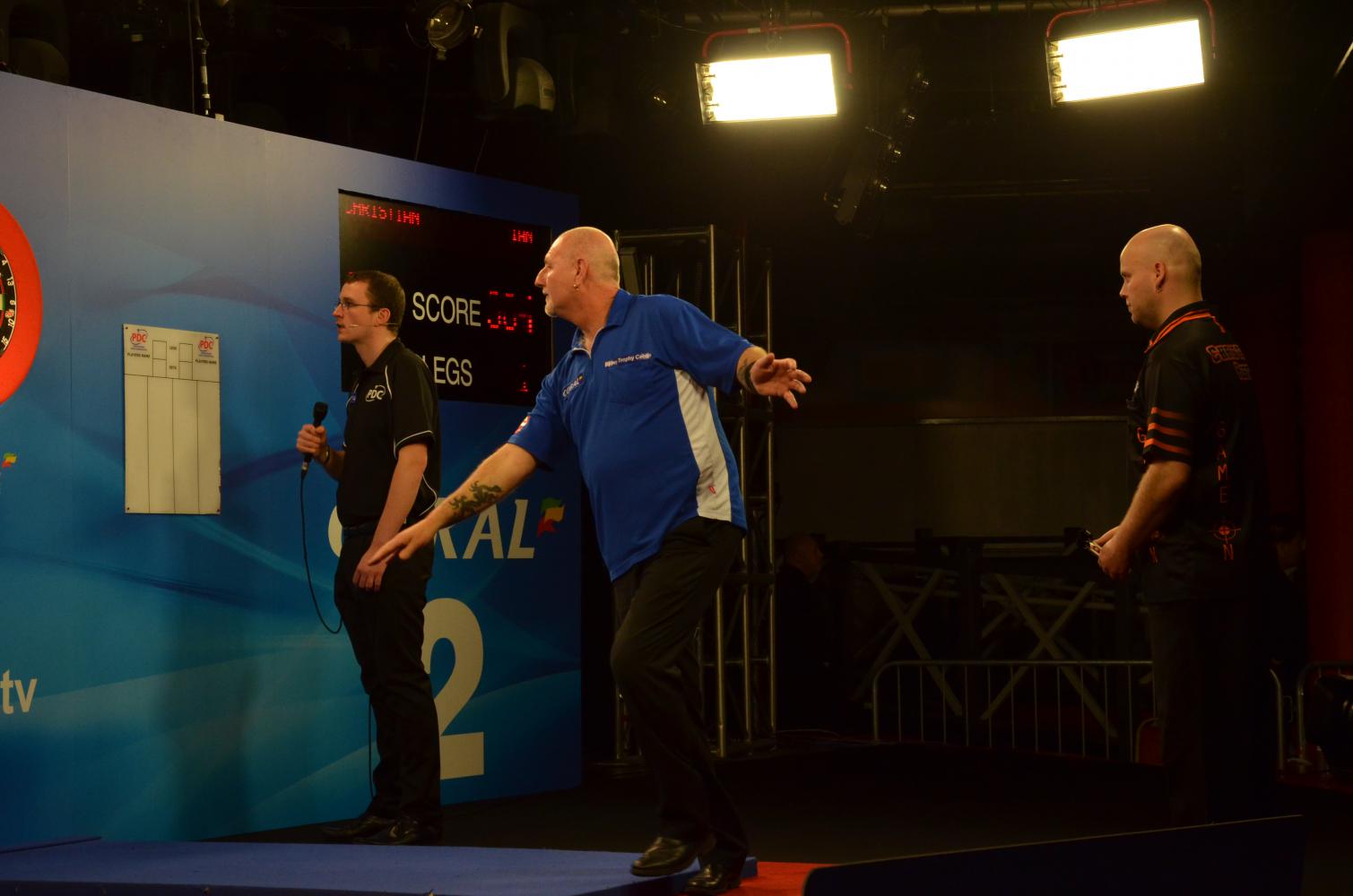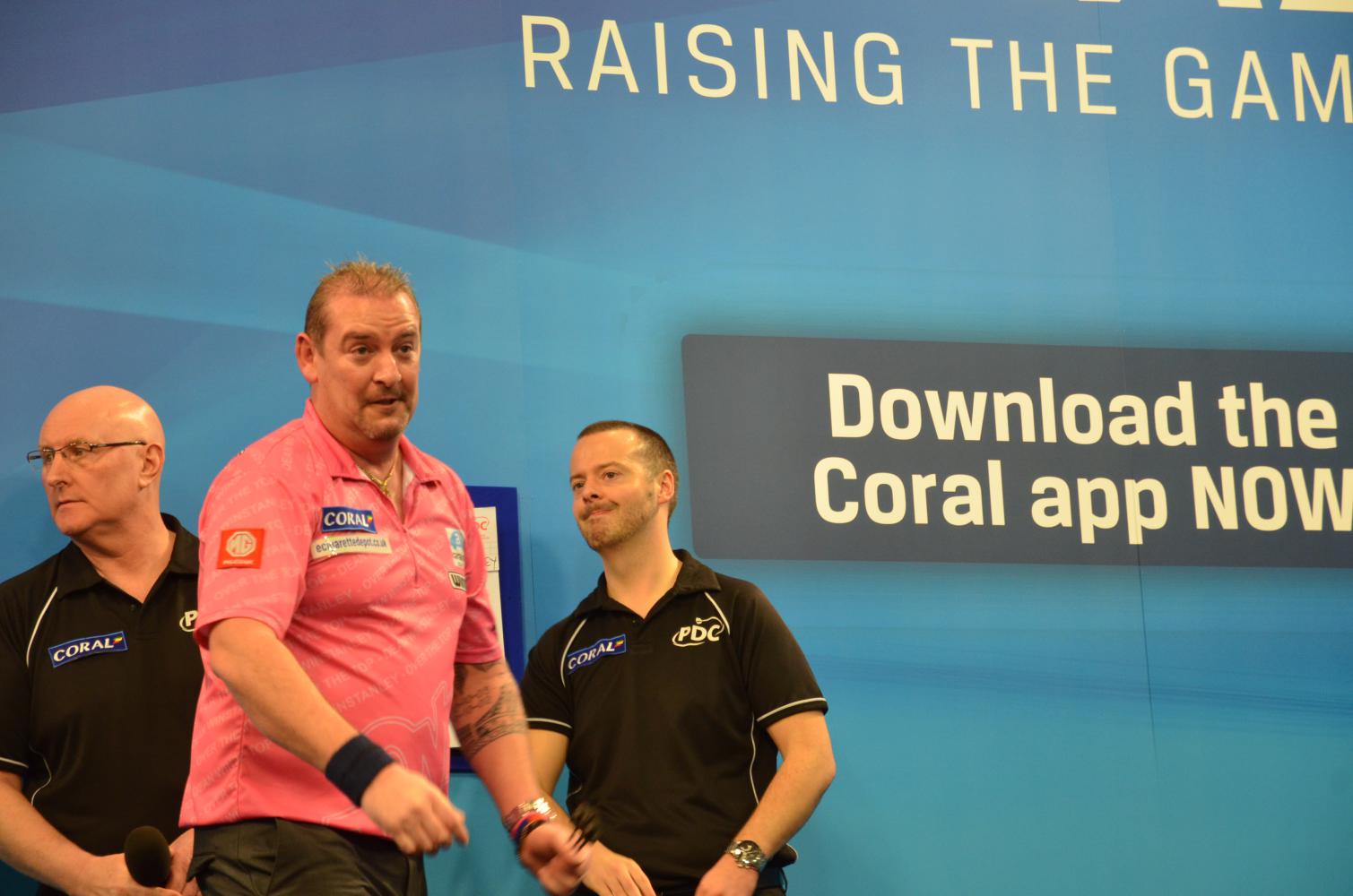 Am ersten Tag der UK Open konnte ich Lorraine Winstanley nicht im Publikum entdecken. Vielleicht hatte sie geahnt, dass ihr Mann bereits in der zweiten Runde wieder aus dem Turnier ausscheiden würde.Er sollte aber nicht der einzige bekannte Spieler sein, der den ersten Tag nicht überstand. Da gab es noch größere Namen wie Gary Anderson, der wieder einmal Probleme hatte ein Doppel zu treffen und Adrian Lewis, der ein wirklich schwaches Spiel ablieferte. Nicht zu vergessen John Part, aber das war bei seiner momentanen Form jetzt nicht wirklich überraschend.