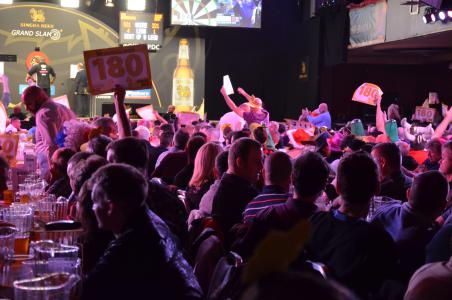 Nach einer längeren Pause, in der ich meine von der Rennerei müden Beine ausruhen konnte und endlich auch Zeit fand etwas zu essen, ging es dann mit der Abend Session weiter. Natürlich standen wieder die Spiele der BDO Spieler im Mittelpunkt des Interesses, würde doch die Legende Andy Fordham am Oche stehen und daneben auch der eiserne BDO Spieler Martin Adams, der in diesem Jahr zum ersten Mal die Einladung zum Grand Slam angenommen hatte. Auch der regierende BDO Weltmeister Scott Mitchell würde am Oche stehen sowie der unbekannte Niederländer Mark Oosterhuis. Und bis auf Mark Oosterhuis erfüllten die BDO Spieler durchaus die Erwartungen der Zuschauer. Scott Mitchell und Andy Fordham verloren zwar ihre Spiele - aber sie zeigten beide bessere Leistungen als viele der PDC Spieler an diesem ersten Tag. Fordham hatte einen Durchschnitt von knapp unter 100, Mitchell mit 104.82 den besten Durchschnitt des Tages - wie er damit verlieren konnte, bleibt für mich ein Rätsel. Und dann gab es da natürlich auch noch Martin Adams, der sich viele Jahre geweigert hatte, die Einladung zum Grand Slam anzunehmen. Das hat er wohl aber eher aus Prinzip gemacht, sicher nicht, weil er befürchtete nicht mithalten zu können. Besonders überraschend fand ich seinen Sieg gegen Ian White aber nicht, Adams hatte mich schon die letzten beiden Jahre bei den Winmau World Masters beeindruckt. Mark Oosterhuis erwies sich als der schwächste der BDO Spieler und er hat zudem noch nie auf so einer Bühne vor Fernsehkameras gespielt - ein starker Michael van Gerwen hatte keinerlei Probleme das Spiel mit 5:0 zu gewinnen.