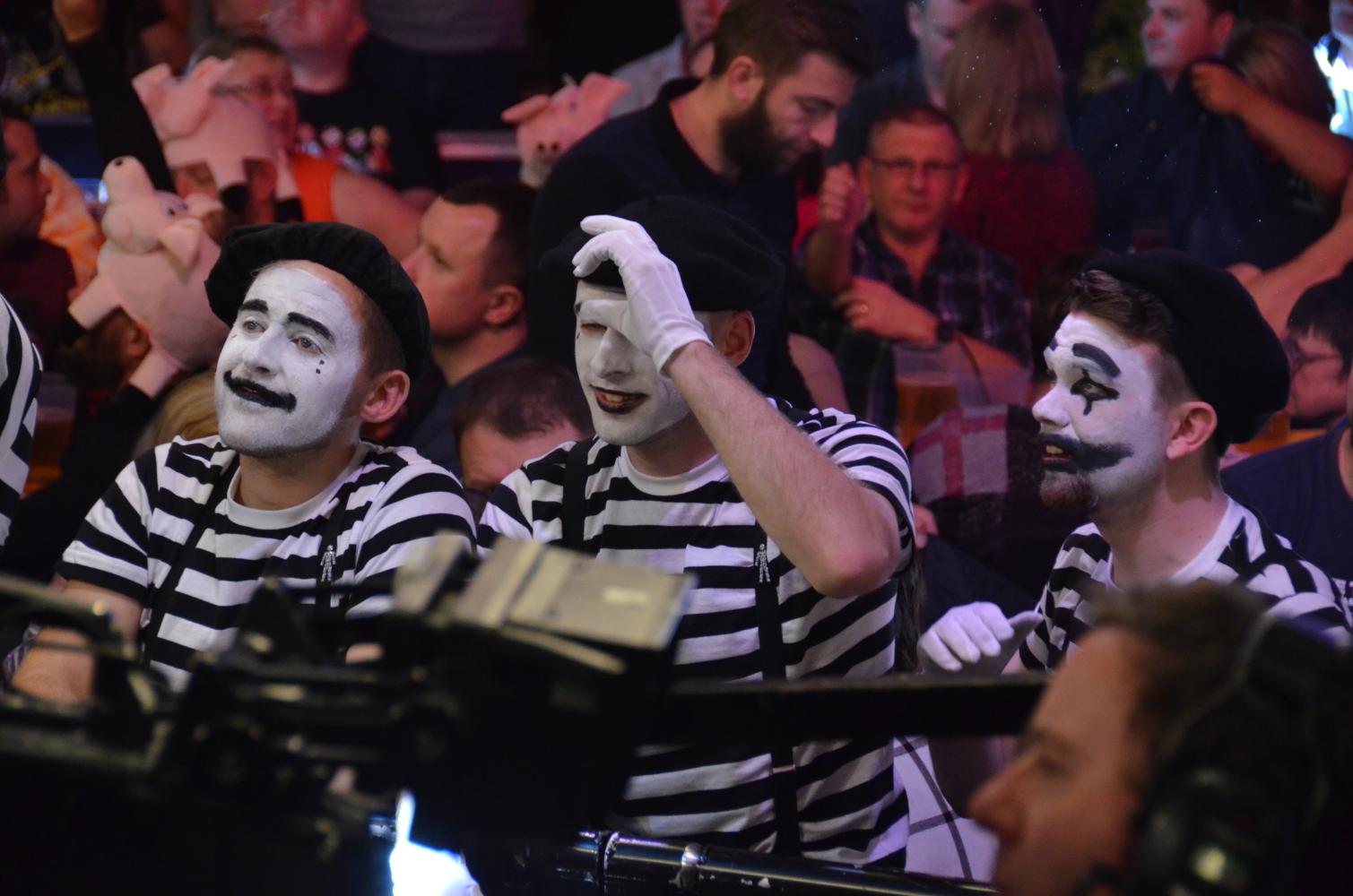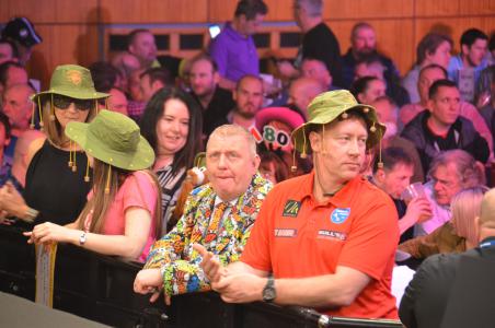 Auf einen langen ersten Tag, an dem ich mit sehr müden Beinen zurück ins Hotel gelaufen war, folgte ein zweiter, ebenso langer Tag, den ich tatsächlich wieder überwiegend auf der Bühne verbrachte. Da die Bühne in Wolverhampton nicht allzu groß ist, hat man den Fotografen (bzw. den Leuten, die so tun als ob nämlich mir) eine Ecke der Bühne zugewiesen, die von Sky Sports nicht erfasst wird. Die Sache hat allerdings einen Haken - entweder man verlässt die Bühne nach den Warm-up Darts oder man bleibt eben das Spiel hindurch in der Fotografen Ecke stehen. Wir hatten schon überlegt, ob wir uns nicht ein paar Stühle in die Ecke stellen sollten..