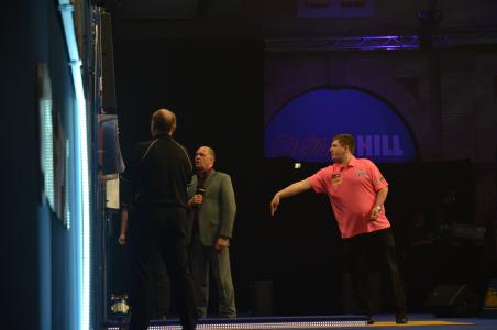 Das auch ein E-Dart Weltmeister auf der Bühne steht, liegt an der Zusammenarbeit der PDC mit Dartslive, die in diesem Jahr nicht den Sieger ihrer Turnierserie, Boris Krcmar nach London geschickt hat, sondern den Amerikaner Scott Kirchner.
