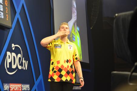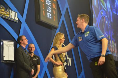 Bühne des Alexandra Palace und warf damals Ronnie Baxter aus dem Turnier. Dimitri van den Bergh hatte in diesem Jahr seinen ersten Auftritt vor