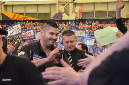 Während sich an den ersten beiden Tagen die Zuschauer auf die drei Veranstaltungsorte verteilten, war am letzten Tag die Arena bis auf den letzten Platz besetzt mit 5000 gut gelaunten Zuschauern, viele davon verkleidet, um die Spiele, die an diesem Tag ja alle auf der Hauptbühne gespielt wurden, zu verfolgen. Wahrscheinlich verfolgen die Zuschauer das Geschehen aufmerksamer als bei anderen Turnieren - Party findet eher außerhalb des Veranstaltungsraums statt, dazu gibt es im Resort genügend Gelegenheit. Dafür wurde am letzten Abend dann Beach Ball gespielt, möglichst immer über die Köpfe des Sicherheitspersonals hinweg, die den Bällen hinter hechteten. Die vergeblichen Versuche die Bälle abzufangen heizten die Stimmung weiter an. Wie die Spieler auf der Bühne das empfanden ist nicht so ganz klar. Peter Wright meinte, er hätte eigentlich nur Angst gehabt, dass einer der Bälle auf der Bühne landen würde. Ansonsten wäre er ja aber von der Premier League her einiges gewöhnt.