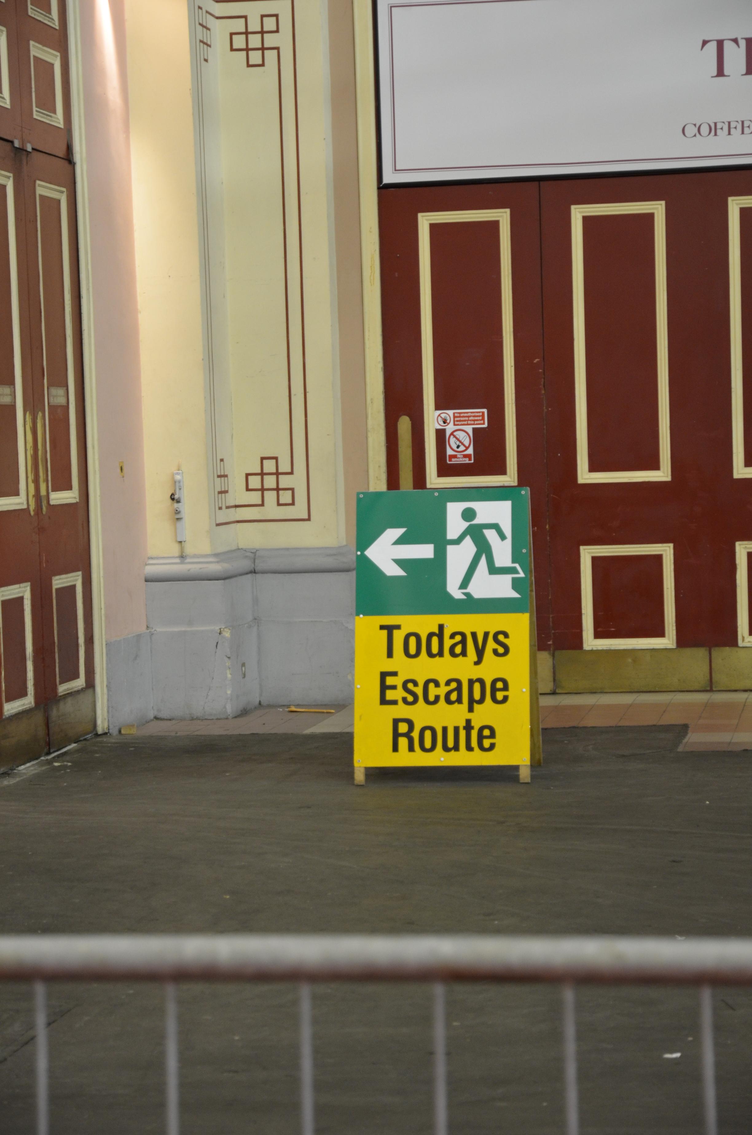 Eine weitere "wo" Frage kann ich zum Abschluss auch noch beantworten, die sicher alle brennend interessiert: "Wo ist denn eigentlich der Fluchtweg im Alexandra Palace?" Heute und (wie man mir versicherte) eigentlich an allen Tagen des Turniers ist er hier zu finden:
