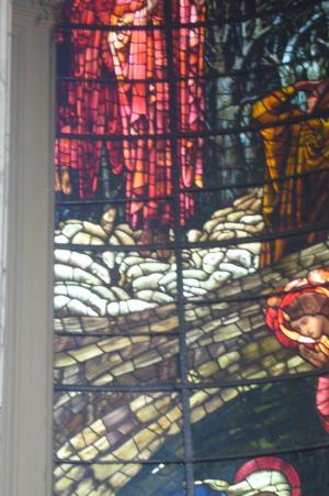 Wie die freundliche Einwohnerin von Birmingham berichtete, gab es in dieser Szene zunächst keine Schafe und die Bevölkerung regte sich so darüber auf, dass Burne-Jones das Fenster wieder ausbauen und auseinandernehmen musste, um Platz für ein paar Schafe zu machen. Erst dann war die Kirchengemeinde zufrieden.