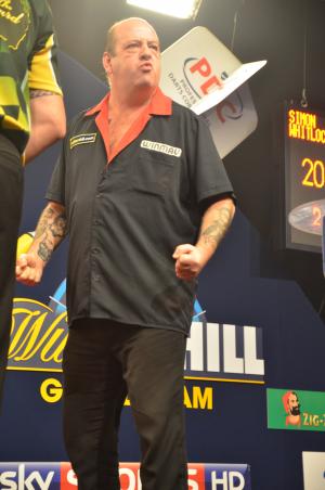 Nach diesem spannenden Spiel wurde es dann in Wolverhampton zwar weniger hochklassig, aber auf jeden Fall noch spannender als Simon Whitlock und Ted Hankey auf die Bühne kamen. Hankey erntete die üblichen Buhrufe, an die er wohl gewöhnt sein dürfte, Whitlock wurde freundlich, aber nicht so begeistert empfangen wie bei uns in Deutschland.