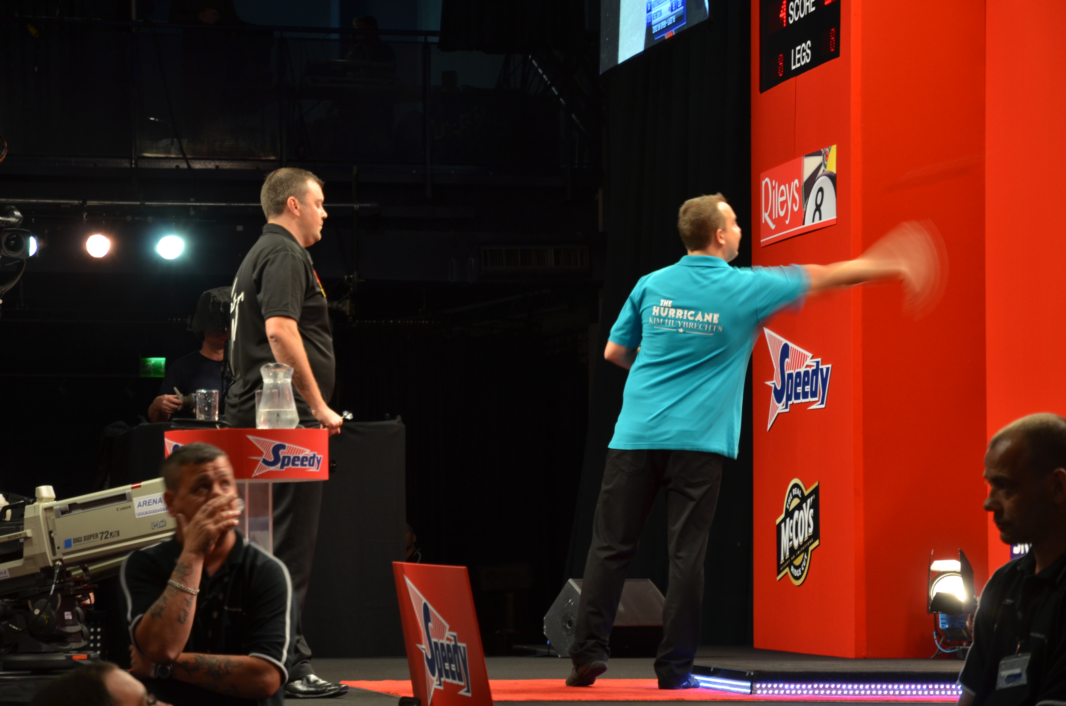 wobei das Publikum immer abwechselnd Huybrechts und Newton anfeuerte. Die Spannung bevor Wes Newton seine letzten Darts zum 9:8 Sieg warf, war