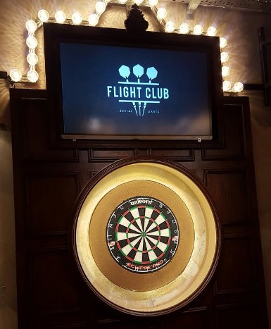 Was hat das alles denn mit Dart zu tun? Nun - der Platz zu dem ich schlenderte war der Flight Club in Shoreditch, London, und das Projekt, um das es sich handelte war ein sehr schickes auf einer Kamera beruhendes System der Punktebewertung im Dartsport.