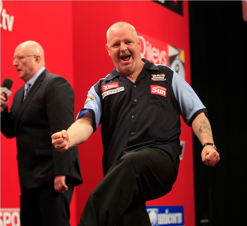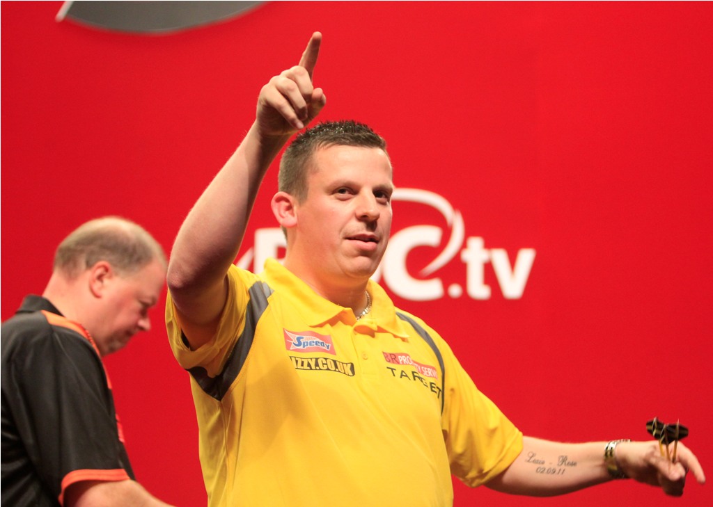 Raymond van Barneveld mit seinem 10:5 Sieg aus dem Turnier. Er konnte die ersten fünf Legs des Spiels ohne
