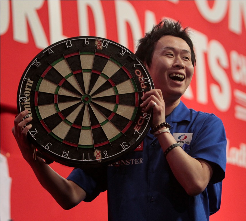 Taylor, der in der zweiten Hälfte des Jahres vier Major Finale gewinnen konnte, sicherte sich das erste Leg des Spiels gegen den Wurf mit der Doppel 16, aber die japanische Nummer 1, die in der Vorrunde den Schweden Dennis Nilsson geschlagen hatte, leistete Widerstand.
