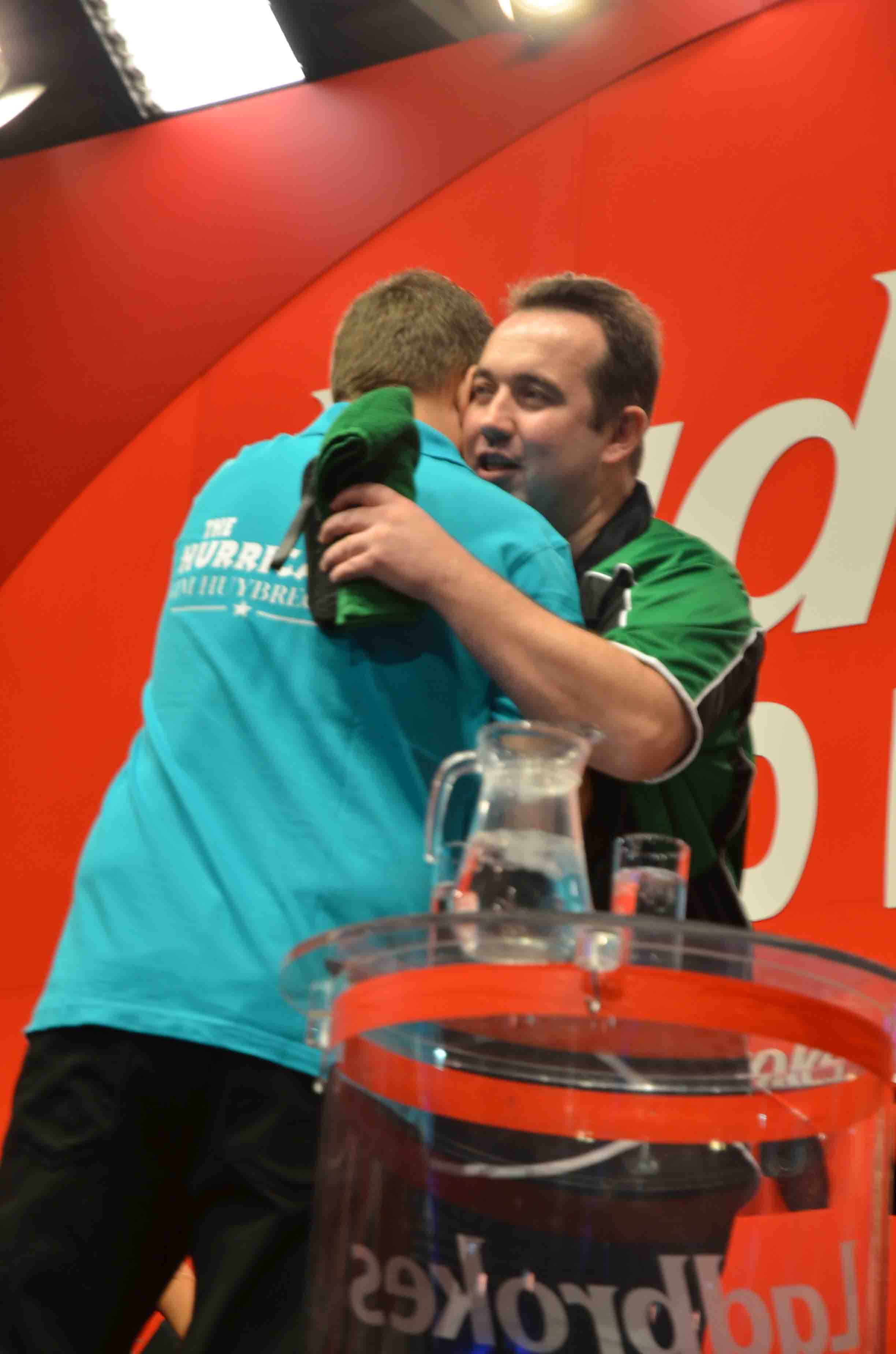 Zu Beginn des dritten Sets konnte Dolan sein erstes Leg gewinnen, Leg zwei fiel dann aber mit der Doppel 8 an Huybrechts, der auch das dritte Leg gewinnen konnte. Mit der Doppel 5 konnte Dolan noch einmal im Spiel bleiben. Im entscheidenden Leg hatte er den Wurf, aber der Belgier stand Dank seines Scorings als Erster auf einem Doppel und holte sich mit der Doppel 6 den Sieg.