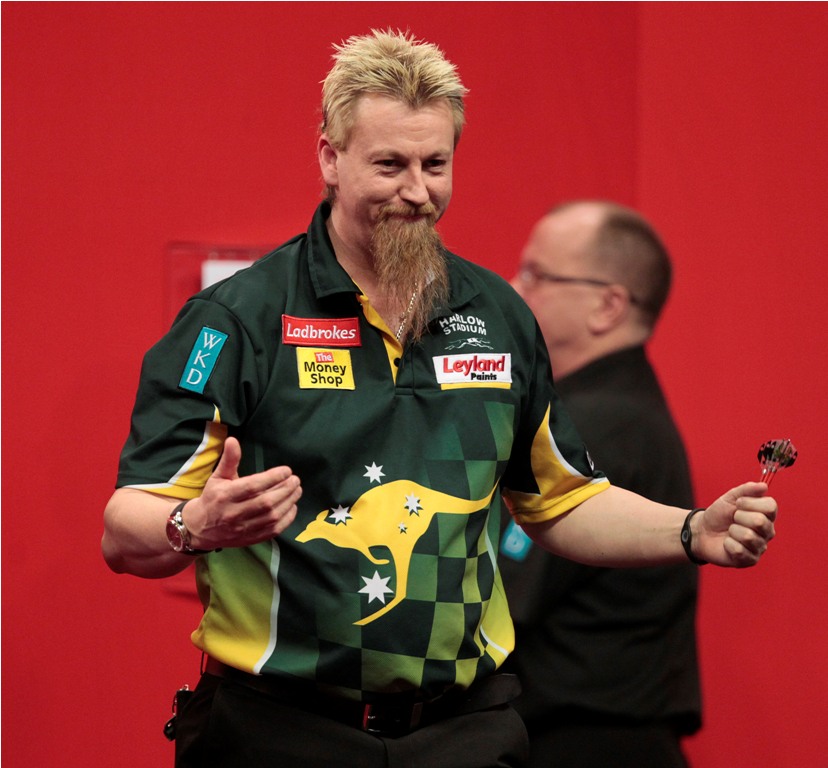 Whitlock holte sich das erste Leg des Spiels mit der Doppel 8. Im zweiten Leg warf er zwei 180, der Neun-Darter gelang ihm nicht, aber mit der Doppel 5 fiel das Leg an den Australier. Mit einem 14-Darter gewann er das erste Set.