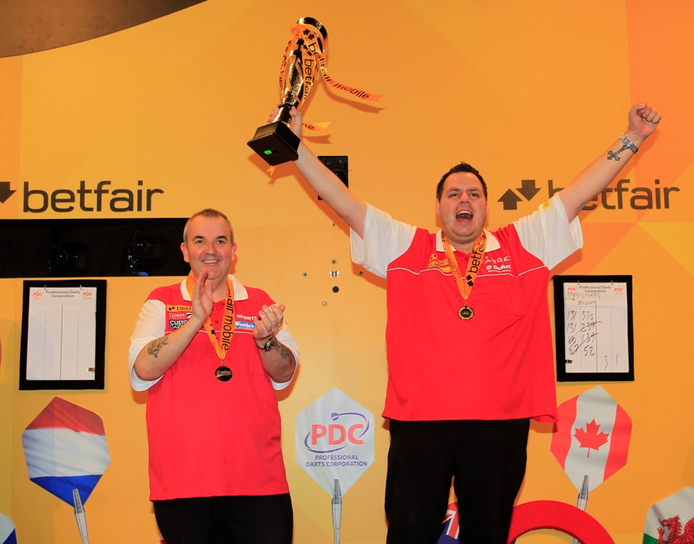 Lewis fügte hinzu: " Es war toll, dass ich im Finale so gut spielen konnte. Ich dachte schon, dass ich Phil in den anderen Spielen ein paar Mal hatte hängen lassen und irgendwie wurde es immer schlimmer, je mehr ich mich bemühte. Aber im Finale habe ich nur knapp einen Neun-Darter verpasst und gegen Kim einen Durchschnitt von 105 erzielt, das war schon schön. Den Titel zu behalten war unser Hauptziel und das haben wir geschafft."