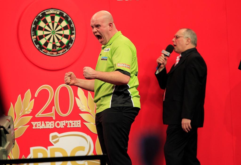Van Barneveld nahm diesen Schwung mit ins vierte Set, gewann Leg eins gegen den Wurf mit der Doppel 5 und Leg zwei mit der Doppel 16. Im dritten Leg vergab er zunächst fünf Matchdarts, aber Anderson hatte selbst sechs Fehlwürfe auf die Doppel und der sechste Matchdarts des Holländer brachte ihm den Sieg.