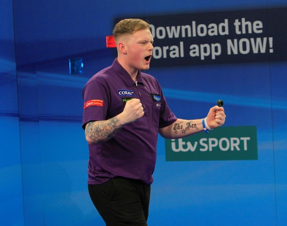 Der zweifache Weltmeister Adrian Lewis warf sieben 180er und kämpfte sich mit einem grandiosen Comeback von einem 3:7 Rückstand gegen den Belgier Ronny Huybrechts noch zu einem knappen 9:8 Sieg. Huybrechts hatte nach einem 167er Finish das Kommando übernommen und konnte nur noch zusehen, als Lewis mit einem 13-Darter den Sieg holte.