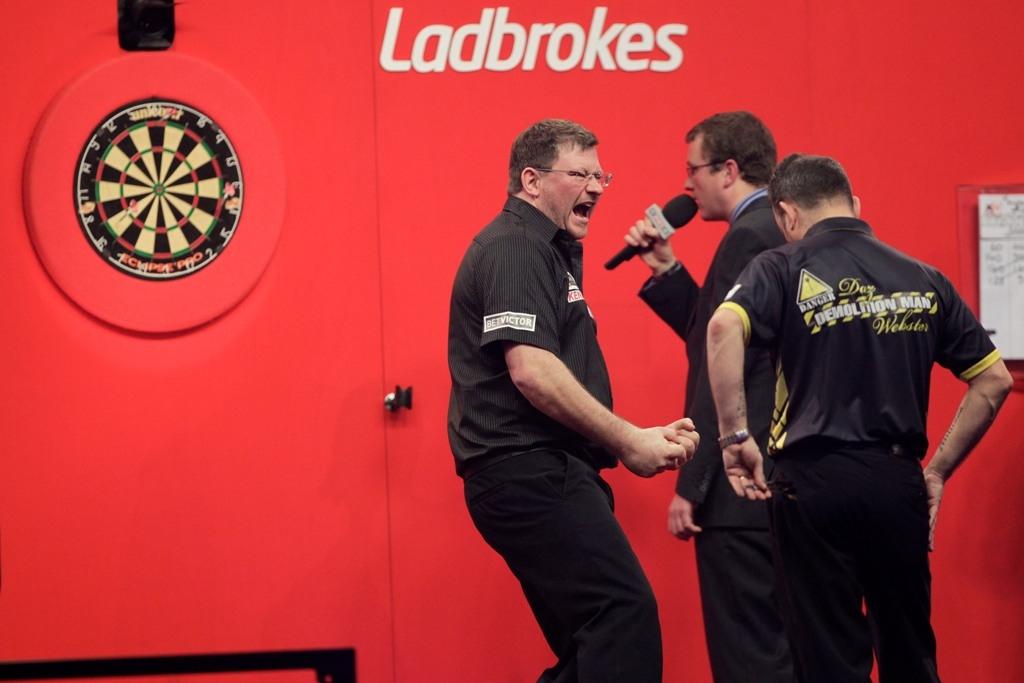 Wade, die Nummer sechs der Welt, hatte gegen Darren Webster schon die Niederlage vor Augen als der Spieler aus Norfolk mit 2:1 in Führung gehen konnte. Dann verpasste Webster aber sechs Matchdarts im entscheidenden Leg des Sets und Wade konnte sich mit einer Doppel 10 gerade noch einmal retten. Das vierte Set des Spiels gewann er dann mit 3:1 und zog in die zweite Runde ein, wo er auf Andy Smith treffen wird.