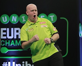 Chisnall konnte zwar das Spiel mit einem 14-Darter beginnen, aber van Gerwen sicherte sich die nächsten vier und übernahm das Kommando. Als van Gerwen mit 6:3 vorne lag, kam es zu einer wohl Spiel entscheidenden Situation: Chisnall stand auf 40 Punkten Rest, aber die Nummer 1 der Welt kam ihm mit einem 132er Finish mit Bullseye, Bullseye, Doppel 16 zuvor und führte mit vier Legs Vorsprung. Chisnall konnte mit der Doppel 8 noch einmal zurückschlagen, aber der Niederländer gewann auch die folgenden beiden Legs mit der Doppel 20 und besiegelte seinen Sieg dann mit einem 10-Darter.