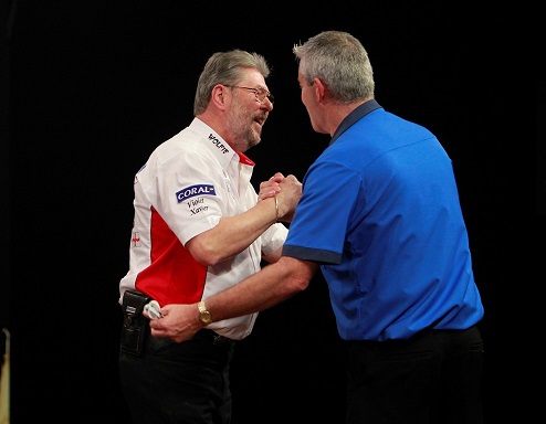Peter Wright qualifizierte sich mit einem 5:3 Sieg über Mervyn King in ihrem Entscheidungsspiel für die nächste Runde. Dazu genügte ihm ein einziger Leggewinn gegen den Wurf im siebten Leg, bevor er alles klar machte.