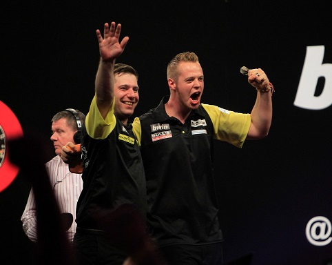 Titelverteidiger Niederlande stürmte mit einem 2:0 Sieg in die Viertelfinale und Michael van Gerwen und Raymond van Barneveld zeigten dabei die bisher beste Leistung des Turniers.