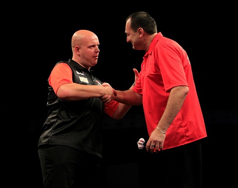 Van Gerwen erzielte einen Durchschnitt von 103.37 und machte unter anderem bei seinem 4:0 Sieg über Graham Filby 148 Punkte aus, während van Barneveld sein Spiel gegen den flamboyanten Devon Petersen mit einem 11-Darter begann und ihn dann mit einem 99.93 Durchschnitt mit 4:1 besiegte.