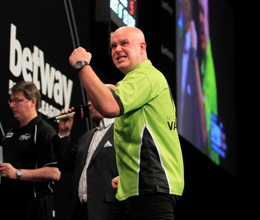 Michael van Gerwen sicherte sich seinen Play-Off Platz durch einen 7:0 Sieg über James Wade, Siege von Raymond van Barneveld und Stephen Bunting sowie das Unentschieden zwischen Phil Taylor und Adrian Lewis sorgen dafür, dass das Rennen um die anderen Top Vier Plätze weiter offen bleibt.
