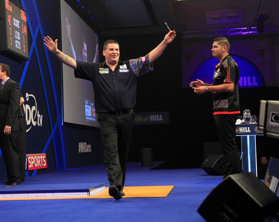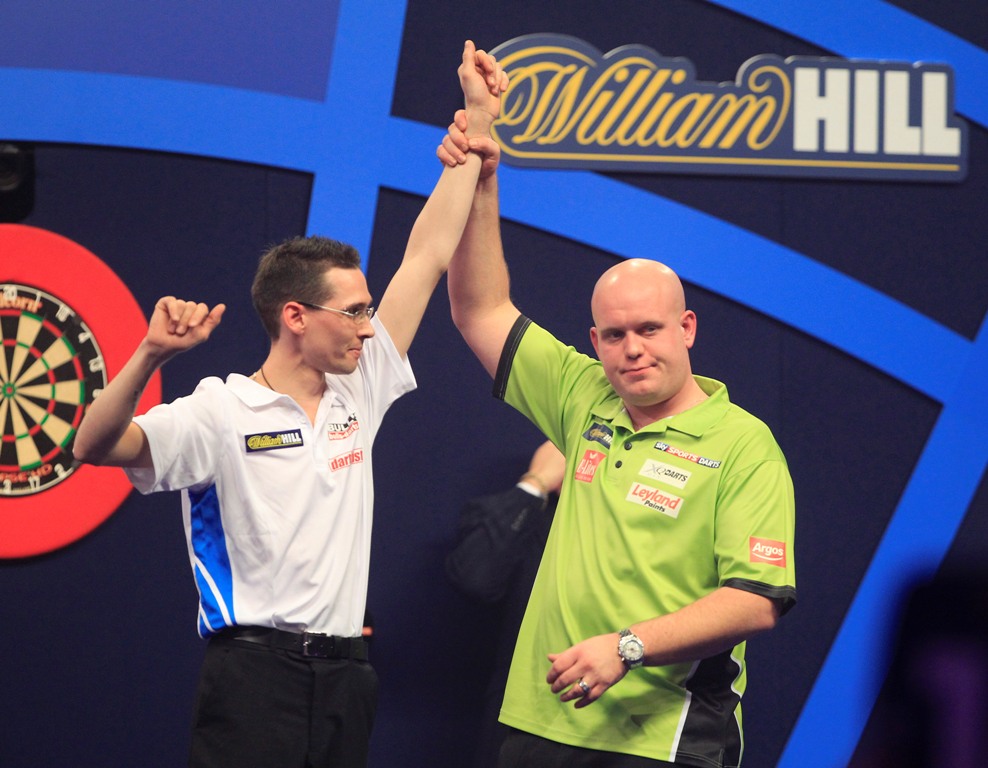 Van Gerwen warf insgesamt acht 180er und hatte einen Durchschnitt von knapp unter 100, in der dritten Runde wird er auch Terry Jenkins treffen.
