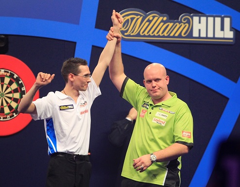 Titelverteidiger Michal van Gerwen überstand einen guten Stand und vorrübergehenden hartnäckigen Widerstand des deutschen Qualifikanten Sascha Stein und holte sich einen 4:1 Sieg.