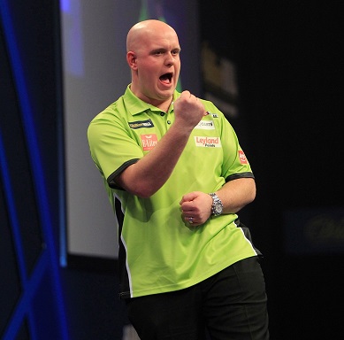 Im Rampenlicht des Abends stand Titelverteidiger Van Gerwen, dessen Durchschnitt knapp unter 100 lag, der drei 180er warf und eine eindrucksvolle Trefferquote von 56 Prozent auf die Doppel hatte. Er zog unter die letzten Acht des Turniers ein.