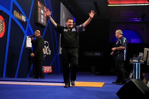 für Fehlwürfe auf die Doppel. Er sicherte sich die nächsten drei Sets zur 6:4 Führung, aber Taylor konnte noch einmal
