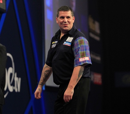 Der ehemalige Finalist Gary Anderson musste eine gefährliche Herausforderung durch den Sieger des Vorrunden - Spiels Scott Kirchner abwehren, um sich einen