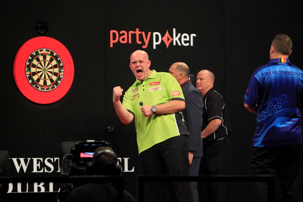 Kim Huybrechts war es gelungen das erste Set ihres Spiels 3:1 zu gewinnen. Im zweiten Set geriet er 0:2 in Rückstand, konnte aber ausgleichen. Im entscheidenden Leg warf van Gerwen eine 180 und schnappte sich anschließend das Leg. Huybrechts holte sich das erste Leg des dritten Sets, van Gerwen antwortete mit einem 160er Finish und ging nachdem Huybrechts das Bullseye für sein Finish verfehlt hatte, mit der Doppel 16 in Führung. Mit einer Doppel 10 sicherte er sich das Set. Im vierten Set war der Niederländer nicht mehr zu bremsen und gewann alle drei Legs.