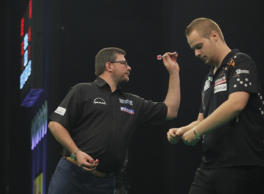James Wade ließ seinem 6:0 Sieg über Gary Anderson in der ersten Runde einen hervorragenden 10:3 Sieg über den jungen Deutschen Max Hopp folgen und war dabei sehr sicher auf seinen Doppeln. Wade ging rasch mit 3:0 in Führung. Das vierte Leg ging nach einer 180 mit einem 96er Finish an Hopp. Die folgenden vier Legs wurden geteilt bevor Hopp von Wade für Fehlwürfe auf die Doppel abgestraft wurde und auf 7:3 davon zog und schließlich nach zwei 13-Dartern den Sack zumachen konnte.