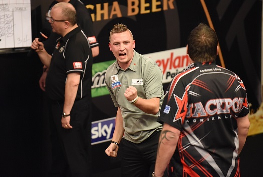 Der aufstrebende Chris Dobey ließ seiner Niederlage jetzt einen Sieg über den als Nummer drei gesetzten Adrian Lewis folgen, der damit nach zwei Niederlagen ausgeschieden ist.