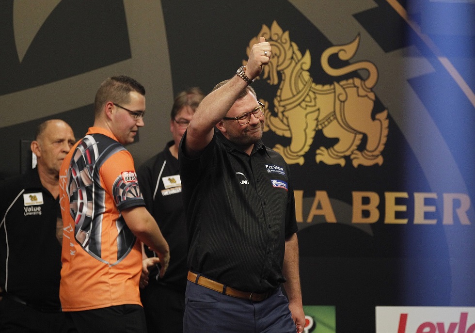 Die beiden Speilre teilten sich die ersten vier Legs, dann holte sich van Barneveld drei Legs nacheinander, eines davon gegen den Wurf, und führte mit 5:2. Aber Durrant kämpfte sich zurück und konnte ausgleichen. Mit einem weiteren Run über drei Legs zog der Niederländer auf 8:5 davon und konnte seinen Vorteil bis zum Schluss behaupten. Er tritt jetzt in den Viertelfinalen gegen Gary Anderson an.