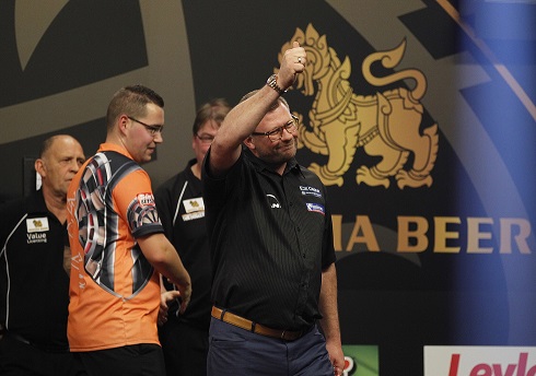 Der Grand Slam Finalist von 2010 James Wade stürmte mit einem 10:2 Sieg über Benito van de Pas in die Viertelfinale, wo er auf Chris Dobey treffen wird.