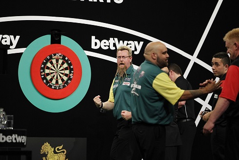 Kanada steht zum ersten Mal seit 2010 in den Viertelfinalen des Turnieres, nachdem sie überraschender Weise Wales aus dem Turnier geworfen haben. Die vielen Zuschauer in Frankfurt schauten gebannt zu, wie der dreifache Weltmeister John Part und sein Partner Ken MacNeil sich mit 2:1 gegen die Waliser Mark Webster und Gerwyn Price behaupteten.