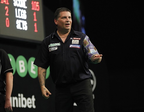 Weltmeister Gary Anderson musste erst einen Rückstand wieder wettmachen um sich dann doch gegen Kim Huybrechts in die Halbfinale zu spielen. Er schlug den Belgier mit 3:1 und steht zum zweiten Mal unter den letzten Vier. Das erste Set verlor der Schotte ohne dass er einen einzigen Dart auf die Doppel gehabt hatte. Mit dem zweiten Set konnte er dann aber ausgleichen und gewann dann sechs der nächsten acht Legs zum Sieg. In den Halbfinalen wird er auf van Barneveld treffen.