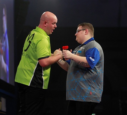 Turnier Favorit van Gerwen holte sich die ersten sechs Legs des Spiels und schien einen einfachen Durchmarsch zu haben, aber Eidams, der im Vorrundenspiel gegen Thanawat Gaweenuntawong, hatte seine eigenen Vorstellungen und gewann in einem unglaublichen Run sechs der folgenden sieben Legs, so dass das Spiel in ein fünftes Leg ging. Als es auch dort nach vier Legs Unentschieden stand wurde ein Tiebreak notwendig. Van Gerwen gelangen zwei solide Legs zum Sieg.