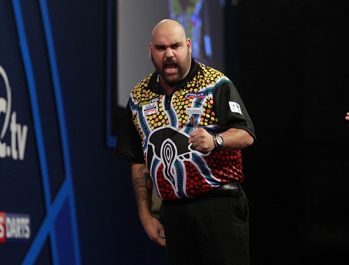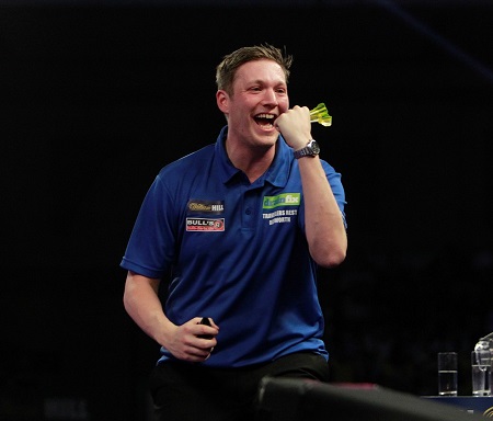 Kyle Anderson holte sich gegen den als Nummer 18 gesetzten Brendan Dolan einen 3:0 Sieg und warf dabei fünf 180er.