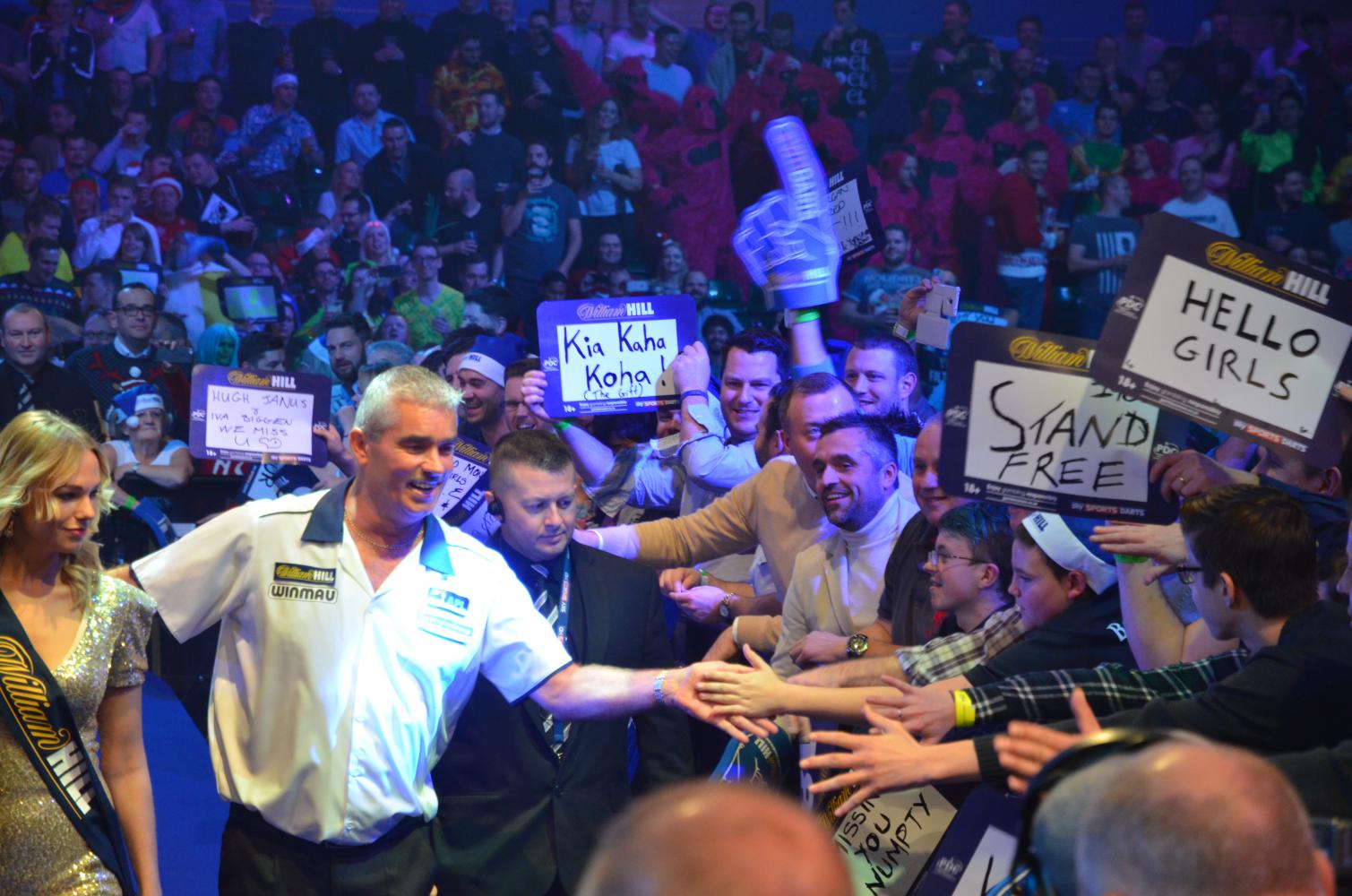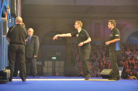 Eine blitzsaubere Leistung legte Veteran Steve Beaton gegen den Neuseeländer Koha Kokiri hin. Das Ergebnis fiel aber mit 3:0 doch etwas zu hoch aus, aber auch hier, wie so oft, war die bessere Trefferquote auf die Doppel Spiel entscheidend. Dann tanzte mit Dimitri van den Bergh die Überraschung des Nachmittags auf die Bühne. Der junge Belgier kann nicht nur tanzen sondern auch Dart spielen und er ließ dem sicher als Favoriten ins Spiel gegangene Ian White keine Chance und gewann mit 3:1. Im letzten Nachmittagsspiel war dann Kim Viljanen wieder an der Reihe, stellte aber für Kevin Painter keine Geahr da. Viljanen spielte schlechter als in seinem Vorrundenspiel und Kevin Painter war einfach eine Klasse besser als sein Gegner.