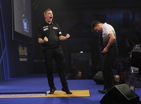 Der Nordire Gurney beeindruckte bei seinem 3:1 Sieg über Jermaine Wattimena, er warf fünf 180er und hatte einen Durchschnitt von beinahe 97.