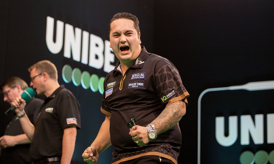 Der Waliser wird jetzt morgen auf Vincent van der Voort treffen, der im ersten Spiel des Abends Chris Dobey für insgesamt 17 Fehlwürfe auf die Doppel bestrafte und sich einen 10:5 Sieg holte und damit zum ersten Mal seit vier Jahren in die Viertelfinale eines im Fernsehen übertragenen Turniers einziehen konnte.