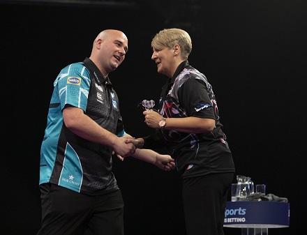 Wie Price hatte auch die Nummer 2 der Welt Rob Cross in Lisa Ashton eine starke weibliche Gegnerin, die er mit 5:2 schlagen konnte.