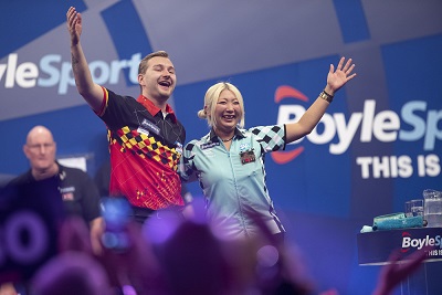 Van den Bergh brauchte neun Darts für seine fünf Doppel und holte sich gegen die Japanerin Mikuru Suzuki mit 5:1 seinen ersten Gruppensieg.