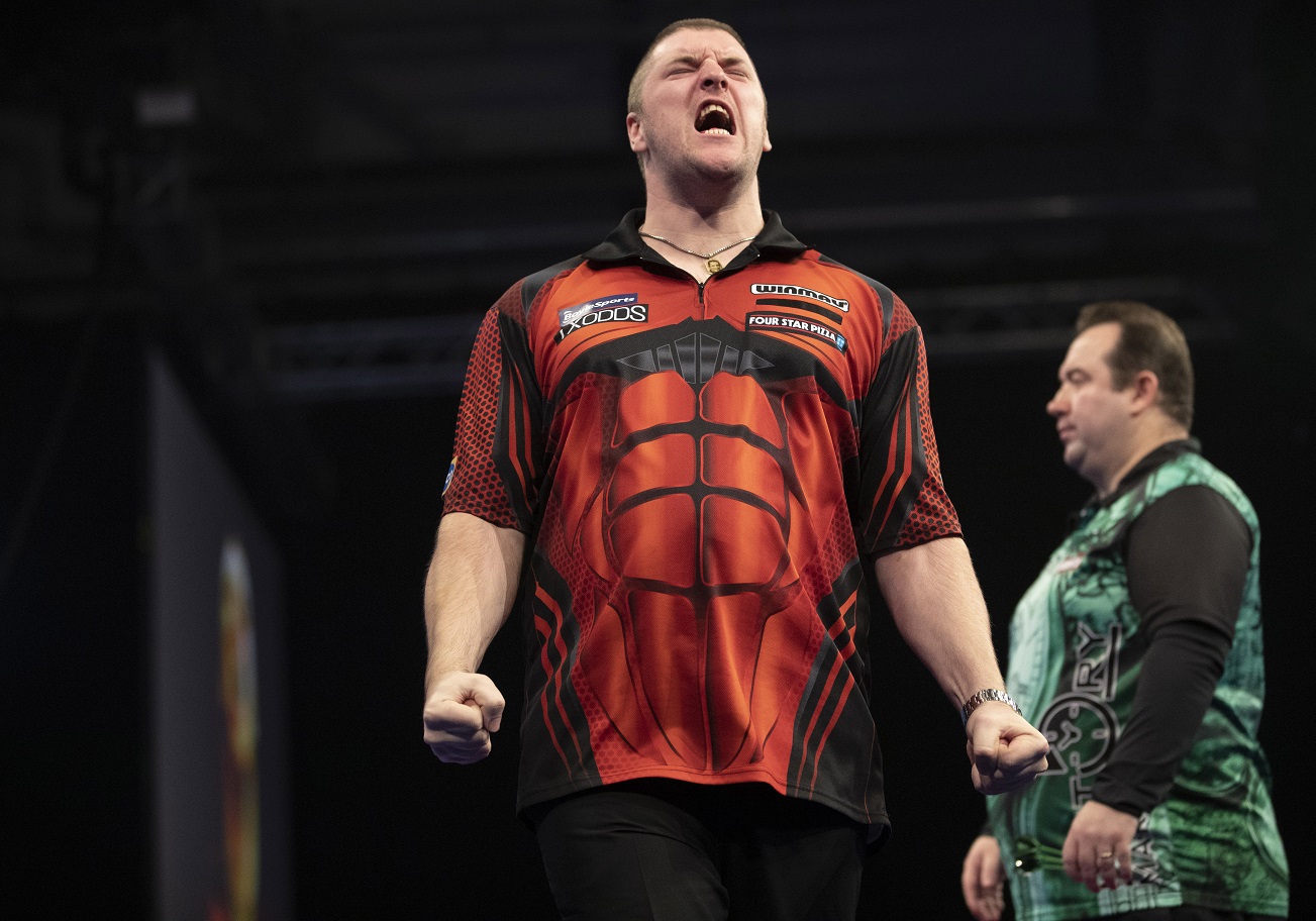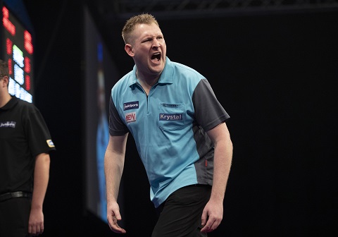 Cross führte bereits mit 4:1 und stand schon fast in der nächsten Runde, vergab aber dann sieben Matchdarts in den folgenden beiden Legs und Hughes kam auf 4:4 heran, so dass es in dem Spiel der Gruppe E in ein entscheidendes Leg ging. Hughes begann mit einer 180 und traf dann mit den nächsten 12 Darts kein Tripel mehr. Das wusste Cross zu nutzen und er gewann noch mit 5:4. Unter den letzten 16 wird er gegen Peter Wright spielen.