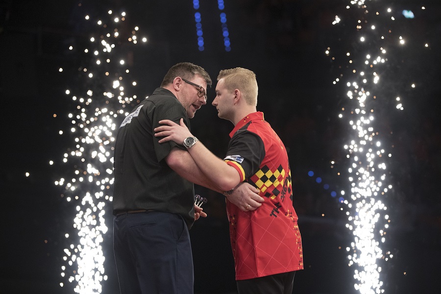 Der belgische Premier League Debütant Dimitri van den Bergh kämpfte sich in einem spannenden und hochklassigen Spiel gegen James Wade zu einem 6:6 Unentschieden. Beide Spieler hatten am Ende einen Durchschnitt von über 100.